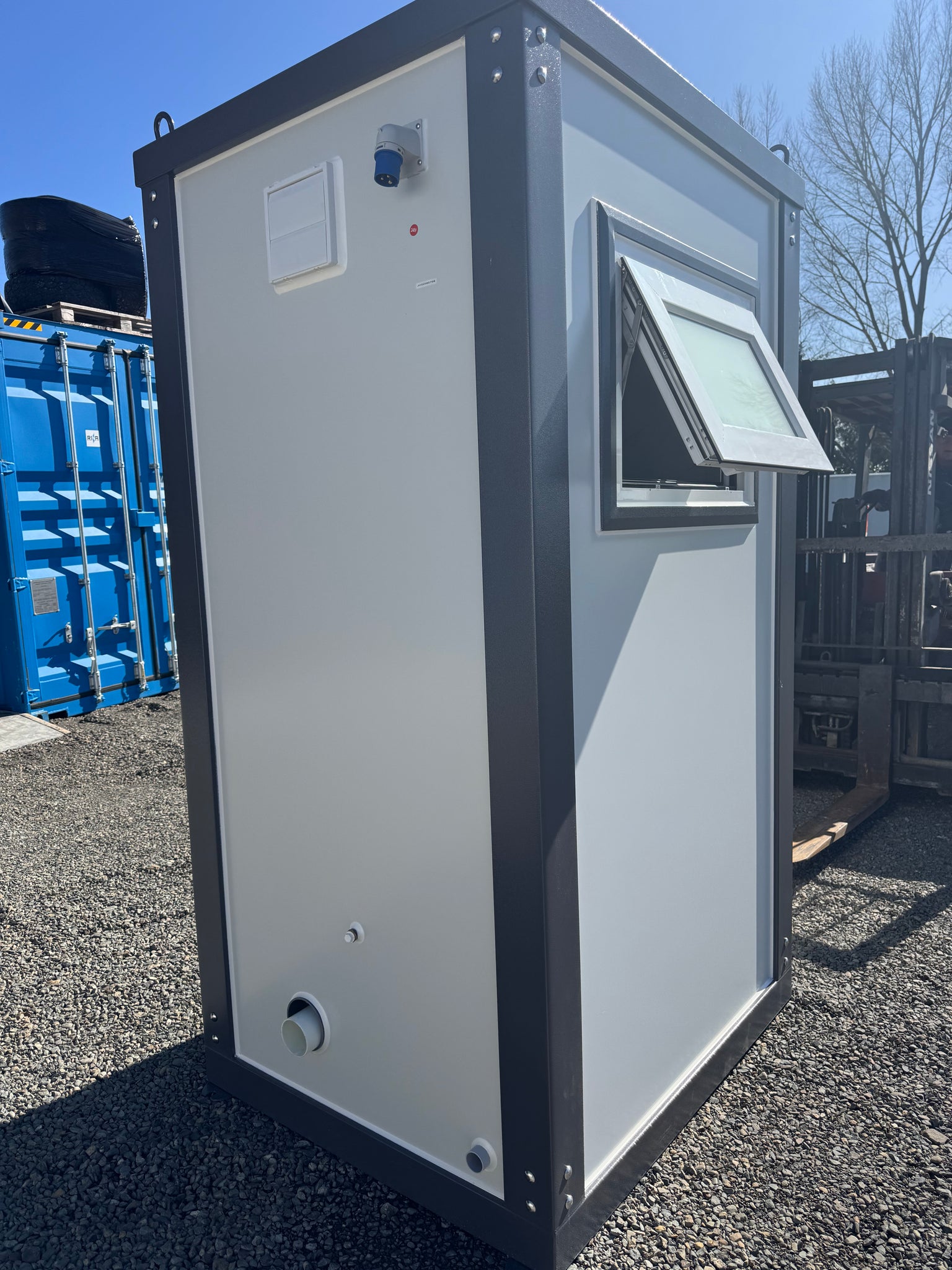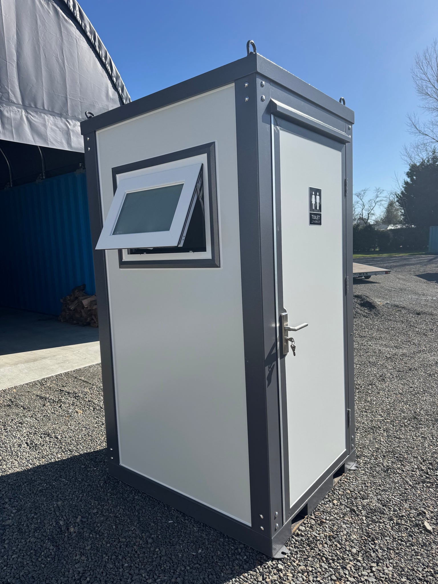 This portable single cubicle toilets are specially designed for use as temporary toilets onsite and in remote locations. They are hygienic, well-ventilated, and efficient toilets.Each toilet cubicle is fitted with a washbasin, tap, full-flushing ceramic toilet, toilet roll holder, lighting, cold water inlet, drainage outlet pipes, and an extractor fan. The walls are made of two layers of steel plates, with an intervening layer of thermal insulation foam.The single cubicle toilet features a steel frame, PVC vinyl flooring, and insulated inlet and outlet pipes.